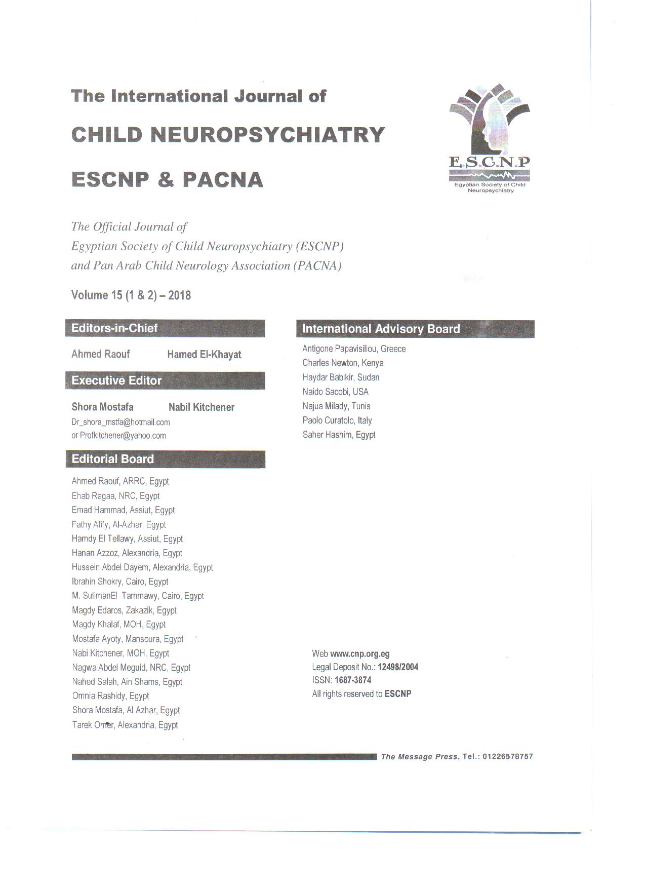 Official Journal of Egyptian Society of Child Neuropsychiatry and Pan-Arab Union of Child Neurology